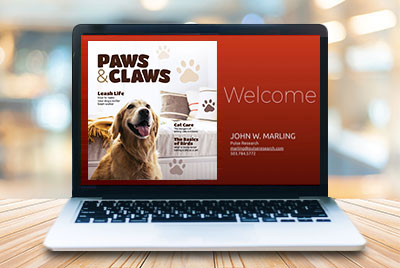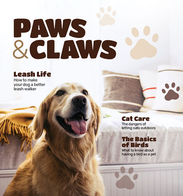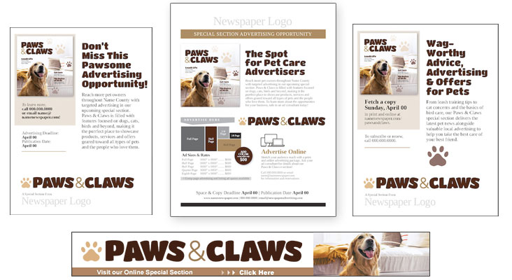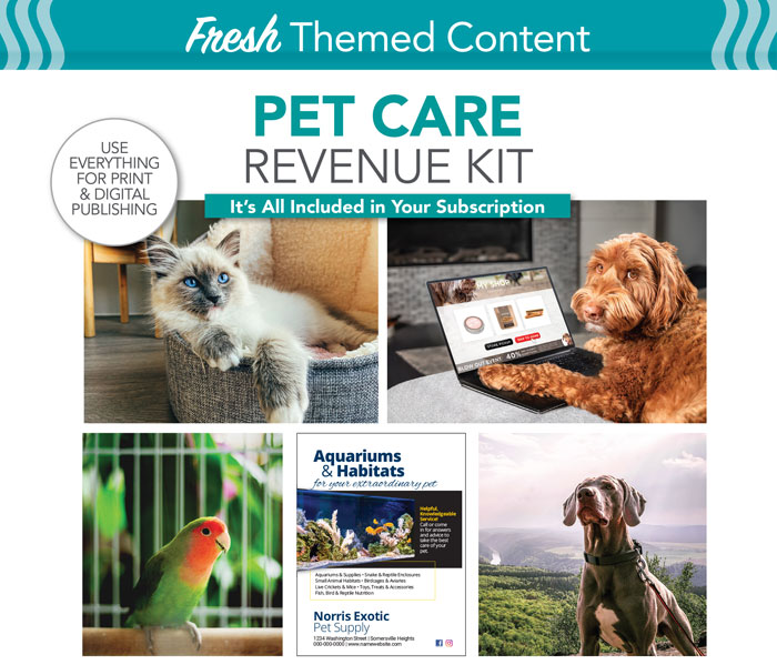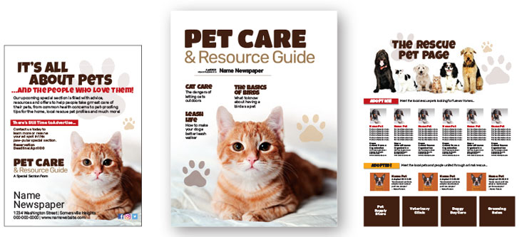 Coordinated cover, sponsor-ready rescue pet page layout, and promotional ad to build out a special section using the latest spec layouts and images from your Creative Library and articles from your Editorial Library
