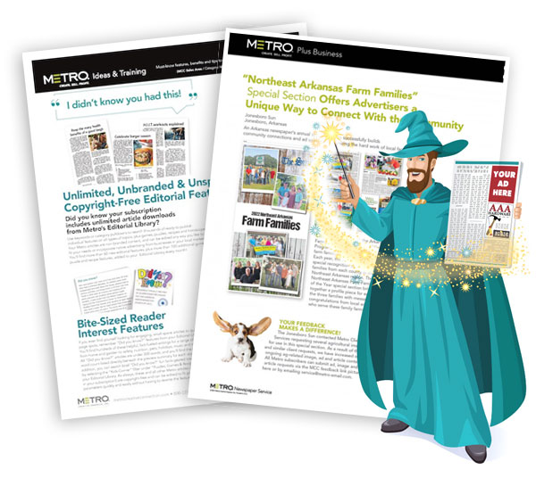 Metro Editorial Services Target related advertisers for key ad positions, surrounding these ready-to-run, copyright-free, consumer-friendly features for timely subjects.