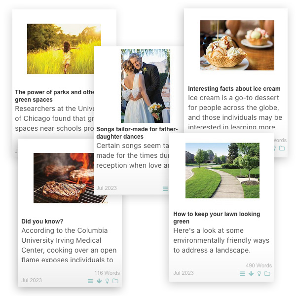 • Over 40 fresh spec ads • Hundreds of new images • Contest ideas and promotions • Top ad sales prospects • Social media posts • Self-promotion ads • “Shop local” coverage • Section covers and pages • Ad starters • Backgrounds • Full-page calendar • Copyright-free articles • Directory layouts • Infographics and shaped ads • Event headings and coverage • Themed graphic elements • Coloring panels • Food photos • Grocery layouts • Religious content • Customer requests • Event promotion ads • Focused content for Canada • Games, puzzles and recipes