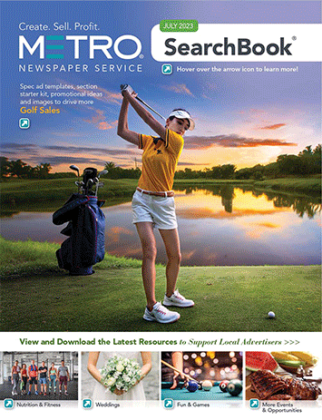 All-New Inspiration to Build Sales & Support Advertisers Help local businesses make the most of every upcoming opportunity using the latest creative content and sales ideas from your July SearchBooks®. Clickable pages connect you directly to every timely promotion, image and layout for instant downloading, making it easier than ever to view, plan, organize and monetize your month.
